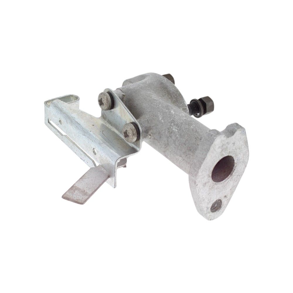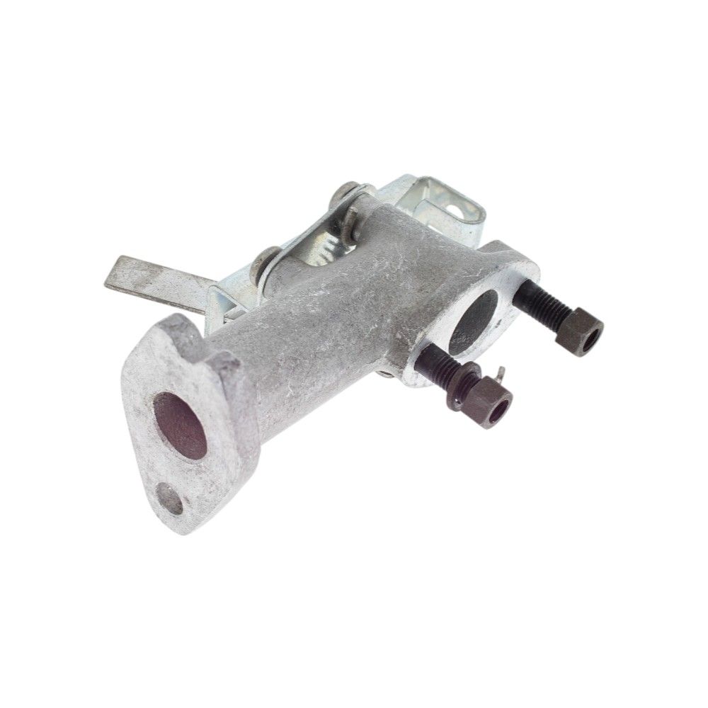 The Inlet Manifold (MPN 26813) is a genuine Villiers component for 50 cc and 75 cc lightweight Villiers engines. Made from robust cast aluminium alloy with a neat, compact elbow form, it provides the correct passage and interface between the cylinder head and a B10/1 carburettor. By maintaining a smooth, sealed air path, it supports reliable starting, steady idling, and consistent running. This part is suitable for restoration and maintenance of classic small stationary engines commonly used in light construction and garden machinery. Supplied as unused vintage stock, the surface may show minor tarnishing from age, which does not affect fit or function. A direct, like-for-like replacement, it helps preserve originality and ensures compatibility with the original carburettor mounting arrangement.