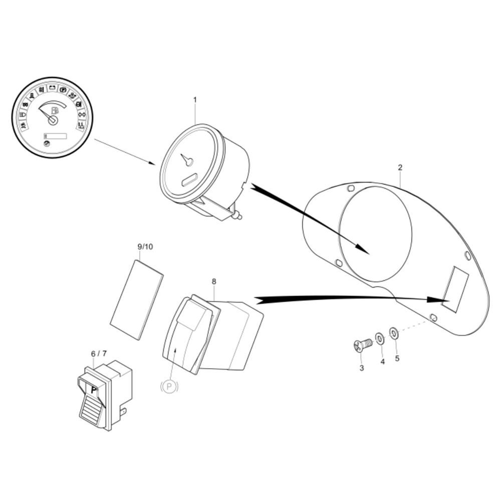 The Instrument Panel Assembly for the Wacker 1601 Dumper includes key components to monitor and control the machine's operation. Designed for durability and precision, this assembly ensures accurate readings and reliable performance. Typical components may include gauges, switches, and wiring harnesses, all essential for maintaining optimal functionality.