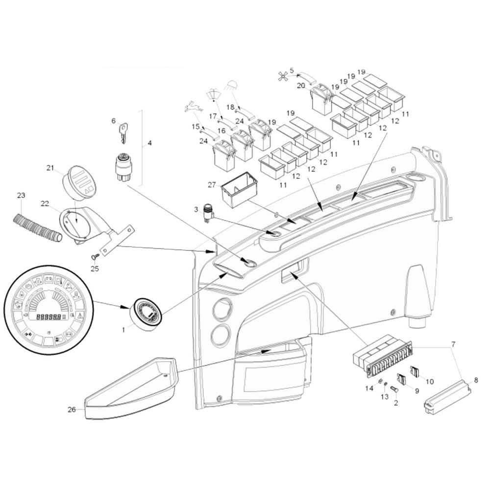 The Instrument Panel Assembly for the Wacker 50Z3 Mini Excavator includes vital components for monitoring and controlling the machine's operations. Designed to fit the Wacker Neuson model, this assembly ensures accurate readings and reliable performance. Key parts may include gauges, switches, and wiring harnesses, all essential for maintaining optimal functionality.