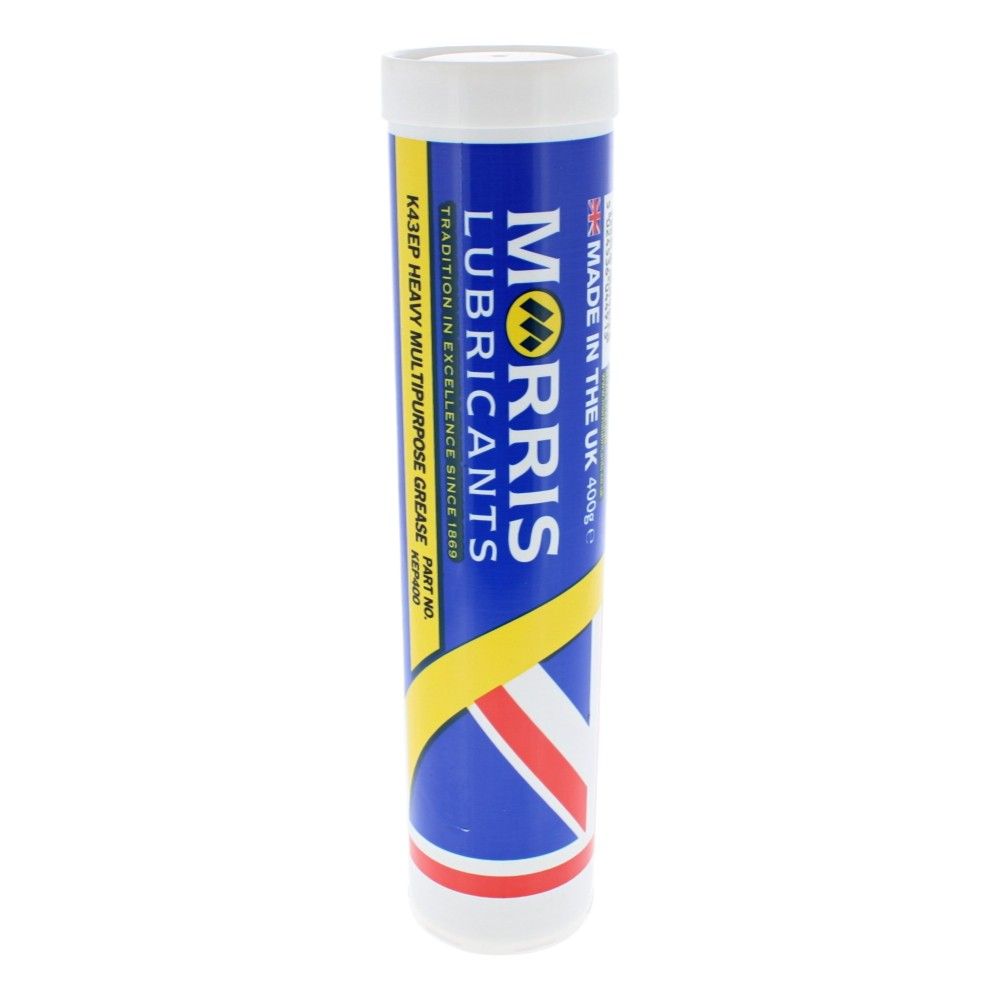 The K43EP Lithium Multipurpose Morris Lubricants Grease (400g) is a Genuine Part formulated for everyday and heavy-duty lubrication across automotive, construction, agricultural and garden machinery. It uses a lithium soap thickener for strong mechanical stability and a solvent‐refined mineral base oil for consistent, reliable lubrication. An EP (extreme pressure) additive system helps protect loaded bearings and sliding surfaces from wear and shock loading. Suitable for wheel bearings, hubs and chassis points, it supports smooth operation in varied temperature conditions and resists thinning during service. The 400 g pack is convenient for regular maintenance and is compatible with many standard grease guns that accept 400 g cartridges. A dependable choice for tradespeople, maintenance teams and DIY users maintaining bearings, pins, bushes and general chassis points.