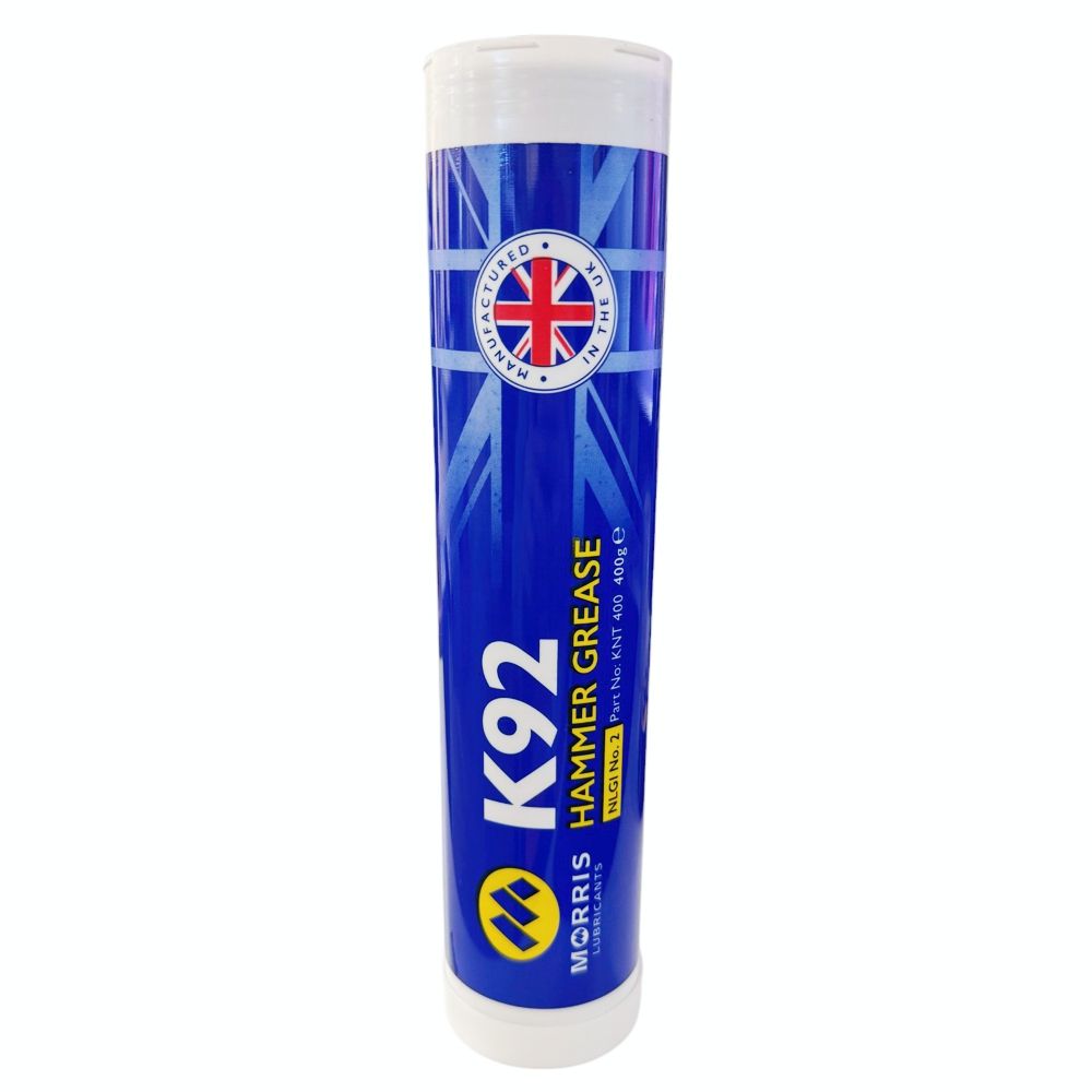 The K92 Morris Hammer Grease (400g) is a specialist, adhesive lubricant formulated for hydraulic hammers (breakers) and heavily loaded pin and bush joints on large earth-moving and off-road plant. Using a bentone (clay) thickener, it produces a tacky, stay-in-place film that resists squeeze-out under impact and maintains protection in harsh conditions. This genuine Morris Lubricants grease supports reliable operation of excavators, backhoe loaders, and other heavy machinery used in demolition, quarrying, construction, and civil engineering. Supplied in a 400 g cartridge, it is suitable for most cartridge-type grease guns for clean and controlled application. K92 helps reduce wear, noise, and vibration at slow-moving, high-load interfaces, supporting equipment uptime and reducing costly downtime due to premature pin and bush wear.