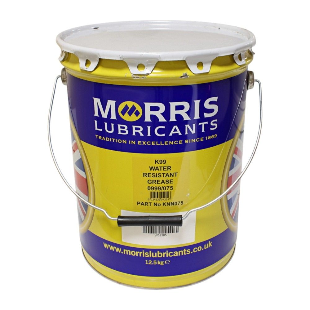 The K99 Water Resistant Grease (12.5kg) from Morris Lubricants is a high-quality, genuine product designed to provide superior lubrication in wet conditions. Formulated with calcium 12 hydroxystearate as a thickener and solvent refined mineral oil as the base, this grease is ideal for use in plain and rolling element bearings and stern tubes. Its water-resistant properties make it particularly suitable for machinery operating in damp environments, ensuring smooth and efficient performance.