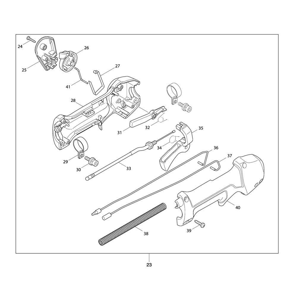 The Lever Assembly for the Makita EM4350LH Brushcutter is designed to ensure optimal control and functionality. This assembly includes key components such as levers, springs, and connectors, which are crucial for the smooth operation of the brushcutter. Genuine Makita parts ensure compatibility and durability, maintaining the performance of your equipment.