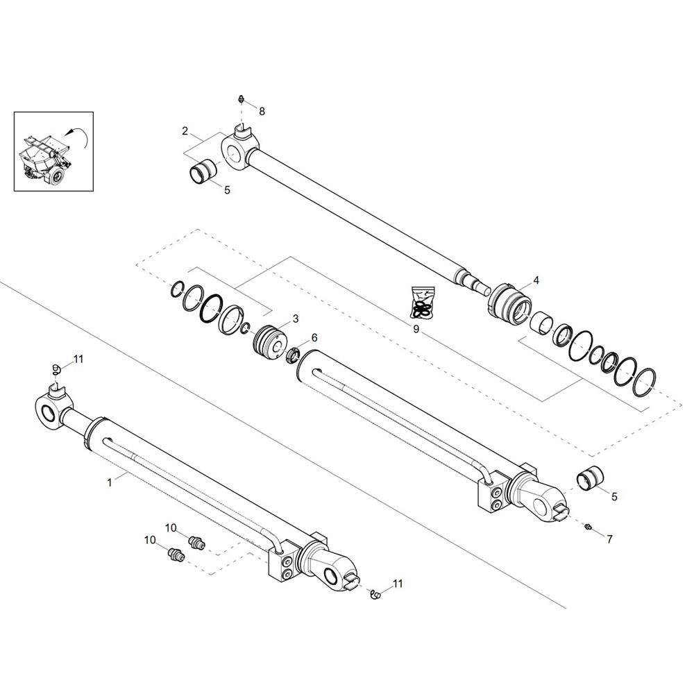 The Lift Cylinder Assembly for the Wacker DW20-2 Dumper is essential for efficient operation and load management. This assembly ensures smooth lifting and lowering of the dumper bed, contributing to the machine's overall performance. It includes components such as pistons, seals, and rods, designed to withstand heavy-duty use. Genuine Wacker Neuson parts ensure compatibility and durability.