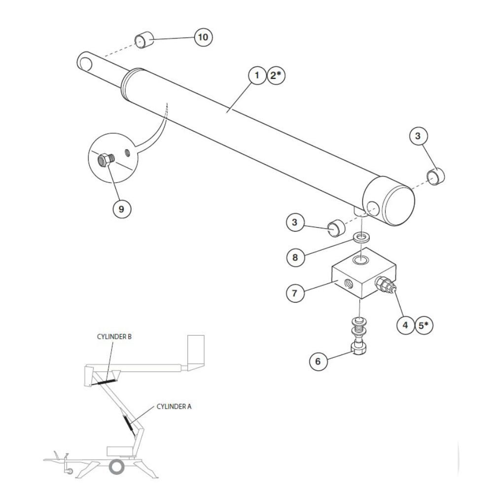 The Lift Cylinder Assembly for Niftylift 120T (TM34T) Access Platforms is designed to ensure optimal performance and safety. This assembly includes critical components that facilitate smooth and reliable lifting operations. Genuine Niftylift parts are used to maintain the integrity and longevity of the platform's lifting mechanism.