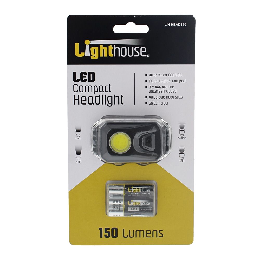 The Lighthouse Compact LED Headlight is a genuine Lighthouse part designed for hands‐free lighting during maintenance, inspection, and outdoor tasks. It uses COB (Chip On Board) LED technology to deliver a bright, even flood beam with four modes: high, low, strobe, and SOS. Housed in a durable black and yellow plastic body with an adjustable elastic head strap, it sits comfortably and stays secure while you work. Output is 150 lumens on high and 40 lumens on low, with a beam distance of 12-19 m. Power is from 3 x AAA batteries (supplied), giving up to 12 hours of runtime. Compact and lightweight at 68 x 41 x 22 mm and only 63 g, it is ideal for service work on construction and garden machinery, vehicles, and general household use.