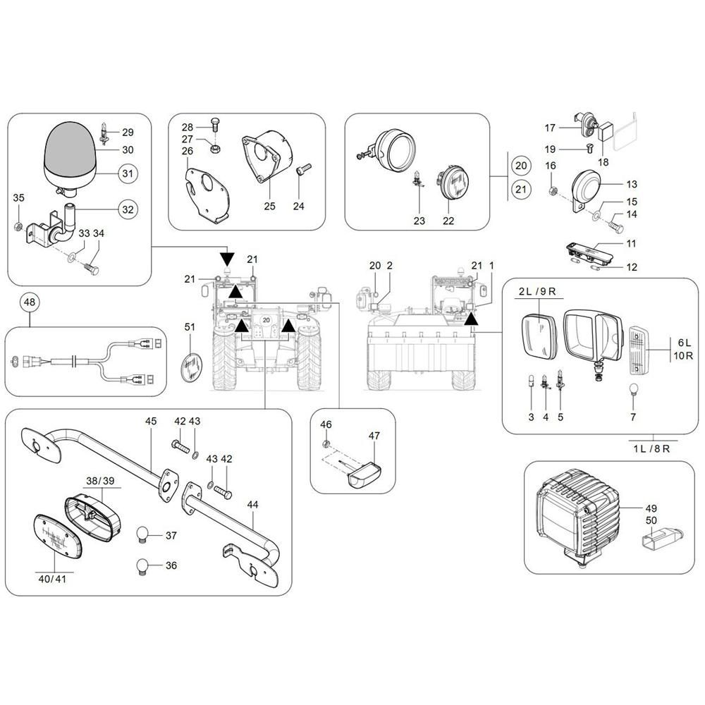 The Lighting Assembly for the Wacker TH730 (415-04) Telehandler ensures optimal visibility and safety during operation. This assembly includes essential components such as bulbs, lenses, and wiring harnesses, designed to fit seamlessly with the Wacker Neuson Telehandler. Regular maintenance of these parts helps maintain performance and extend the lifespan of your telehandler.