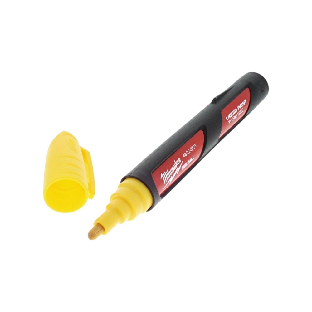 The Liquid Paint Marker Yellow is a genuine Milwaukee part (OEM No. 48223721) designed for clear, durable marking in workshop and site conditions. It uses a paint-based, quick-drying ink that leaves a bright, high-contrast yellow line on a wide range of surfaces, helping with identification, layout, and inspection tasks. The robust, pocket-sized barrel and controlled, valve-action tip make it practical for daily use around construction equipment and garden machinery during maintenance and repair. Suitable for marking metals, plastics, rubber, glass, timber, concrete, and painted or powder-coated parts, it provides long-lasting visibility indoors and outdoors. This is part of Milwaukee's professional marker range, built for reliability and ease of use where accuracy and permanence are important.