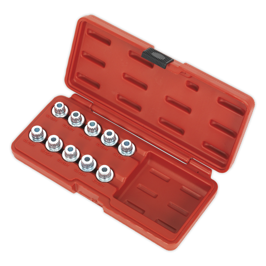 - Set of ten locking keys for the removal of security splined locking wheel nuts on BMW and Mini.