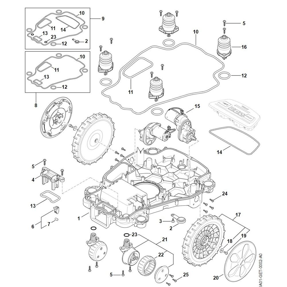 The Lower Housing Chassis for the Stihl iMOW 5.0 Robotic Mower is a crucial component that supports the mower's structure and protects internal parts. This genuine Stihl part ensures durability and compatibility, maintaining the mower's efficiency and performance. Essential for routine maintenance, it helps safeguard the mower from external elements and impacts.