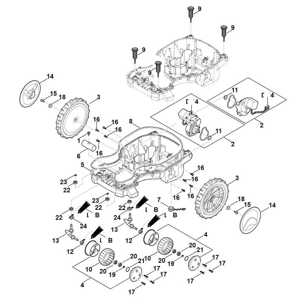 The Lower Housing, Chassis for the Stihl RMI 422.1 PC Robotic Mower is a crucial component ensuring the structural integrity and protection of the mower's internal parts. Designed for durability, it supports the mower's operation by housing essential elements securely. This genuine Stihl part is crafted to fit perfectly, maintaining the mower's performance and longevity.