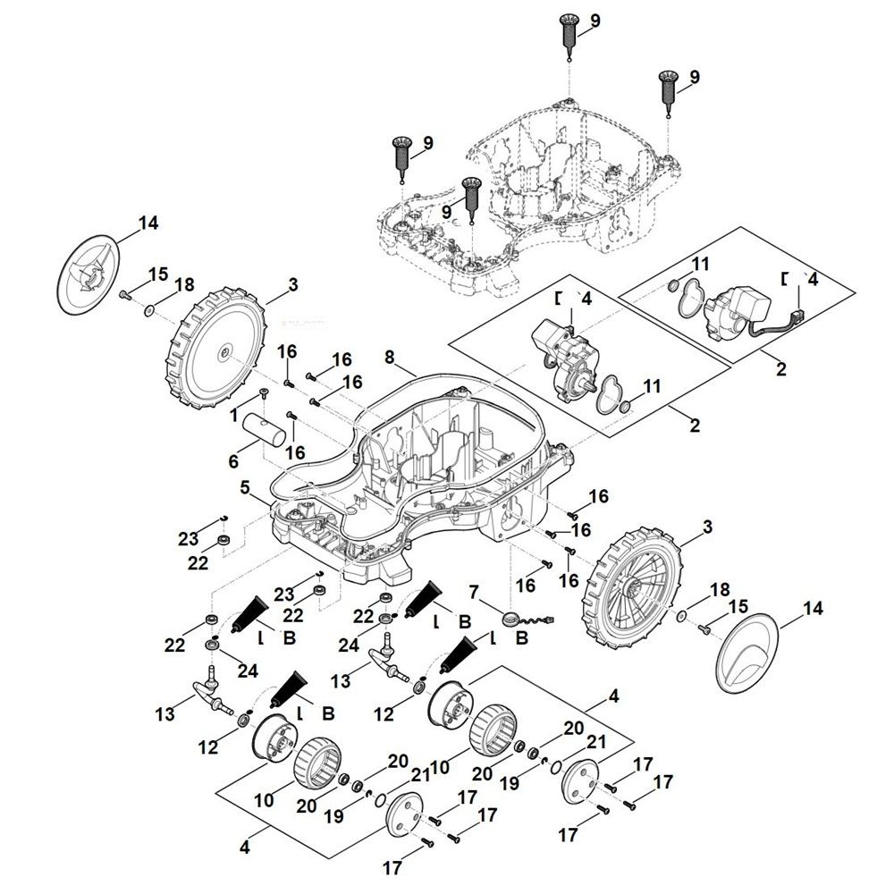 The Lower Housing Chassis for the Stihl RMI 522.0 C Robotic Mower is a crucial component that supports the mower's structure and protects internal parts. Designed for durability, it ensures the mower operates smoothly over various terrains. This genuine Stihl part is essential for maintaining the mower's performance and longevity.