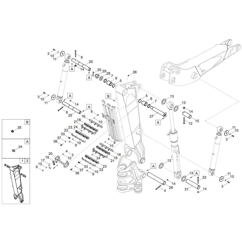 The Luffing Boom Assembly for the Wacker EW100-2 Excavator is designed to enhance the machine's operational flexibility and reach. This assembly includes critical components such as hydraulic cylinders, pins, and bushings, ensuring smooth and efficient movement. Ideal for construction and excavation tasks, it supports precise handling and positioning of loads. Genuine Wacker Neuson parts guarantee compatibility and durability.