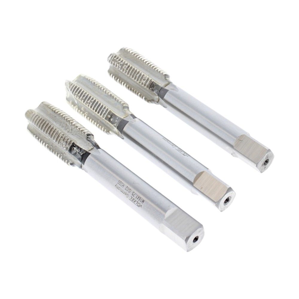 This tap set is commonly used in the maintenance and repair of construction and garden machinery. It is suitable for creating precise threads in metal components, ensuring secure fittings and connections. Perfect for both professional and home use, it supports efficient and effective machinery upkeep.