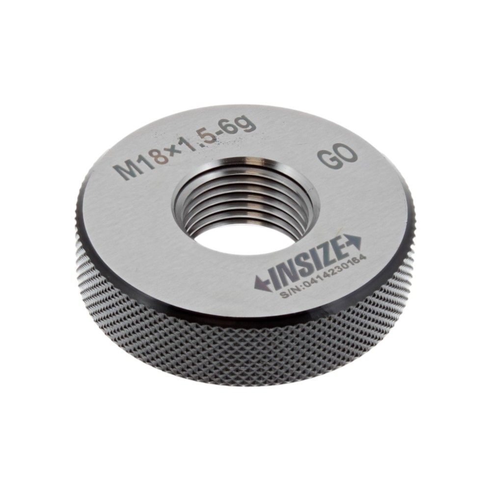 The Insize M18x1.5 Metric Fine Go Ring Gauge 6g from the 4129 Series is a precision tool for checking external (male) metric threads on bolts, studs, and shafts. Built for daily workshop use, it features a durable, precision-ground steel construction in a circular ring form for consistent accuracy and wear resistance. As a GO gauge marked 6g, it confirms that M18 x 1.5 threads meet the ISO 1502 acceptance limits, giving a simple pass result when the thread is within tolerance. This makes it a reliable choice for quality control, assembly, and maintenance tasks on components used across plant, machinery, and equipment in construction, engineering, and garden machinery sectors. It helps ensure trouble-free fits with matching M18 x 1.5 female threads.