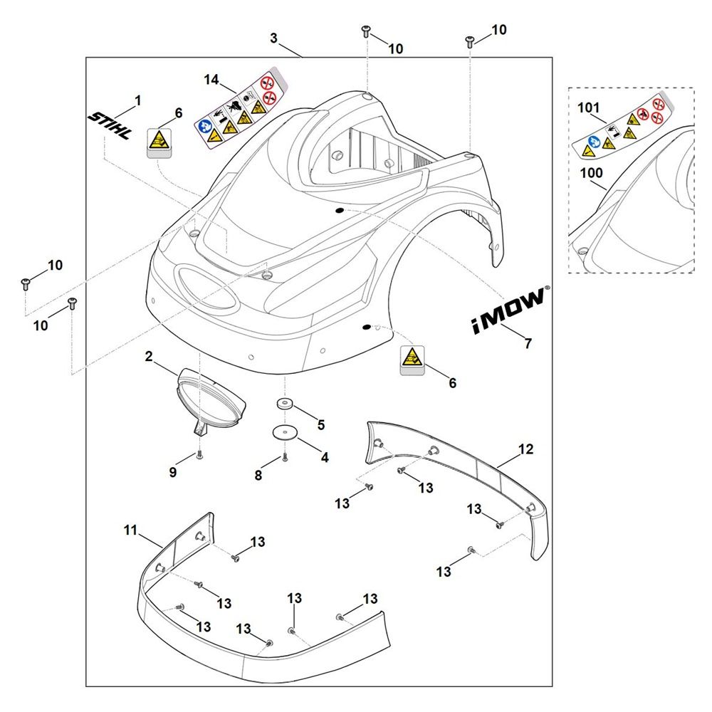 The machine cover for the Stihl RMI 422.2 Robotic Mower offers protection against weather elements, ensuring the mower's longevity and optimal performance. This genuine Stihl accessory is designed to fit perfectly, safeguarding the mower from dust, moisture, and UV rays. Ideal for maintaining the mower's condition during storage or when not in use.