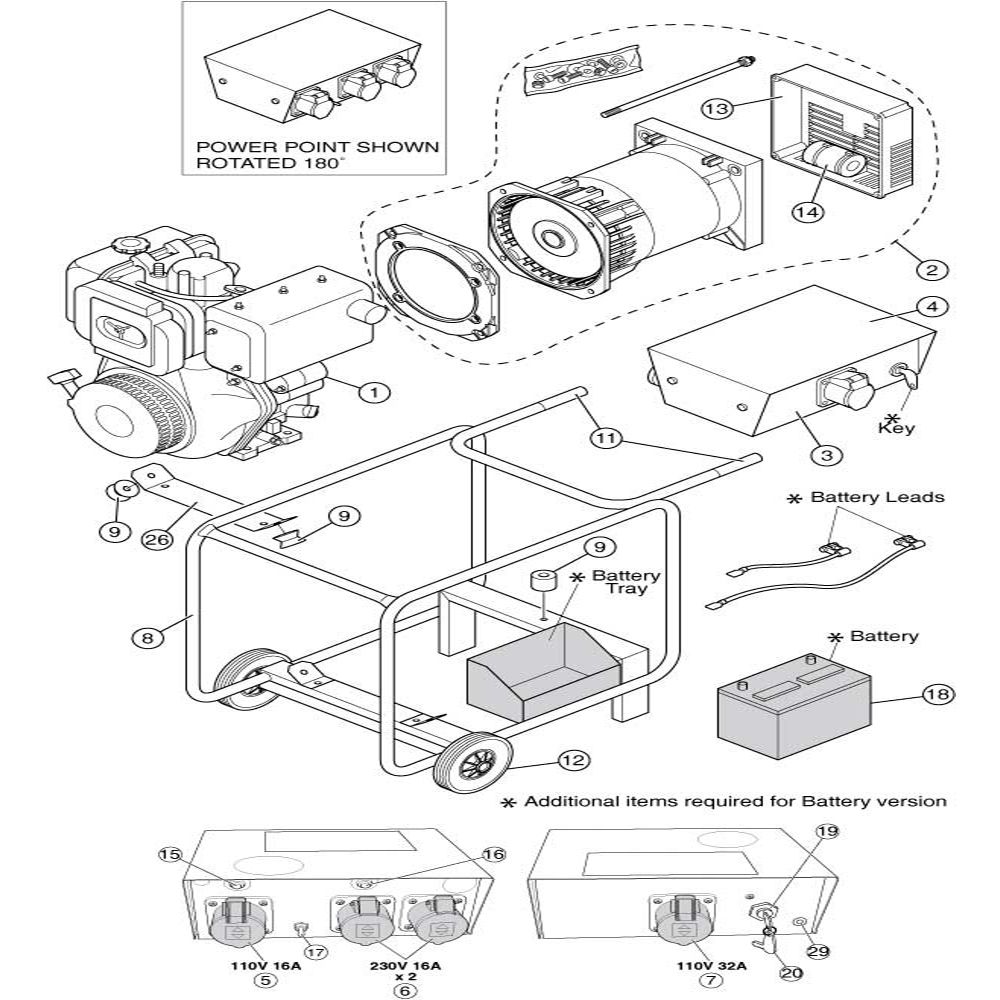 The Main Assembly for the Belle G5000 Generator with Yanmar Engine includes key components essential for optimal operation. This assembly ensures efficient power generation and reliable performance. Components such as gaskets, levers, and seals are included to maintain the generator's functionality. Genuine Belle Altrad parts guarantee compatibility and durability.