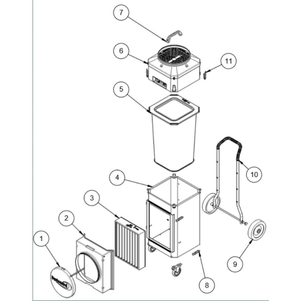The Main Assembly for Dust Control DC AirCube 1200 110V Vacuum Cleaners includes essential components to ensure optimal performance and longevity. Designed for models from 2024 onwards, this assembly helps maintain efficient dust extraction and air filtration. Key components may include filters, motors, and housing units, each contributing to the reliable operation of the vacuum system.