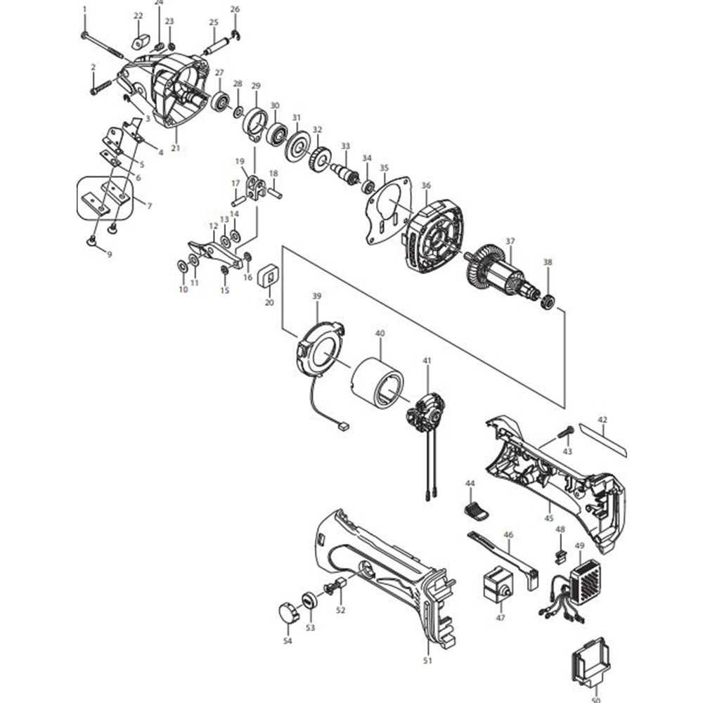 The Main Assembly for the Makita DJS160RFE Cordless Metal Shear and Straight Shear includes vital components for optimal performance. Designed to ensure efficient cutting, this assembly helps maintain the tool's functionality. Components such as blades, gears, and housings are available, catering to both genuine and non-genuine part preferences.