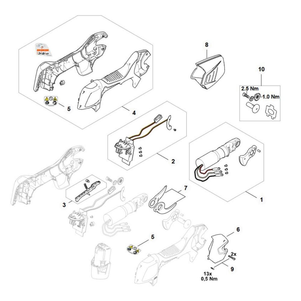 The Main Assembly for Stihl ASA 20 Cordless Pruning Shears includes vital components to ensure optimal performance and longevity. Designed for precise cutting, this assembly helps maintain the shears' efficiency and reliability. Components such as blades, springs, and fasteners are available to support regular maintenance and repair needs.