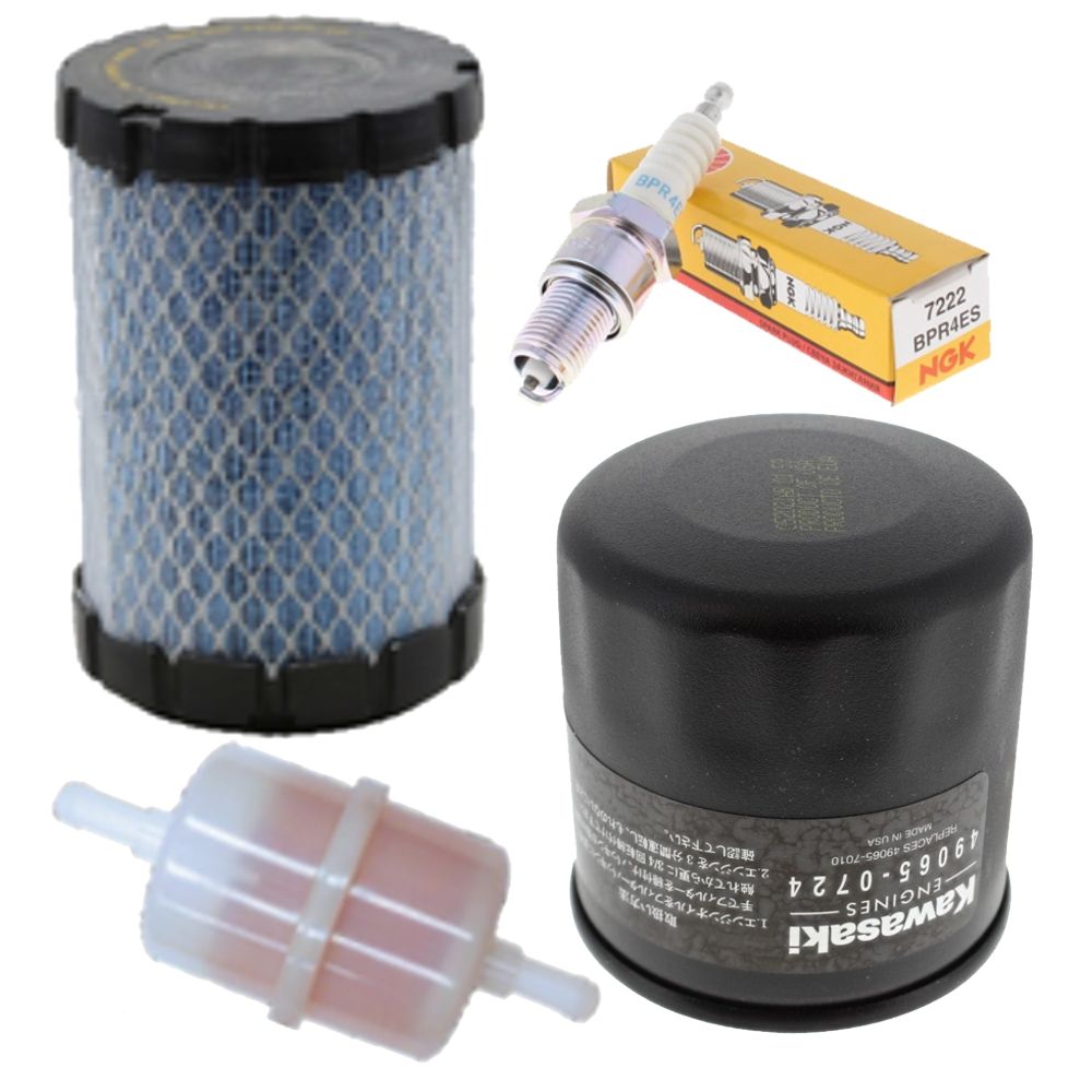 The Maintenance Kit for Kawasaki FT651V and FT691V Engines is a comprehensive set of genuine Kawasaki parts designed to keep your engine running smoothly and efficiently. This kit is specifically tailored for the FT651V and FT691V models, ensuring compatibility and optimal performance. It includes essential components such as the BPR4ES spark plug, air filter, fuel filter, and oil filter. These high-quality parts are crucial for regular maintenance, helping to extend the lifespan of your engine and maintain its reliability.