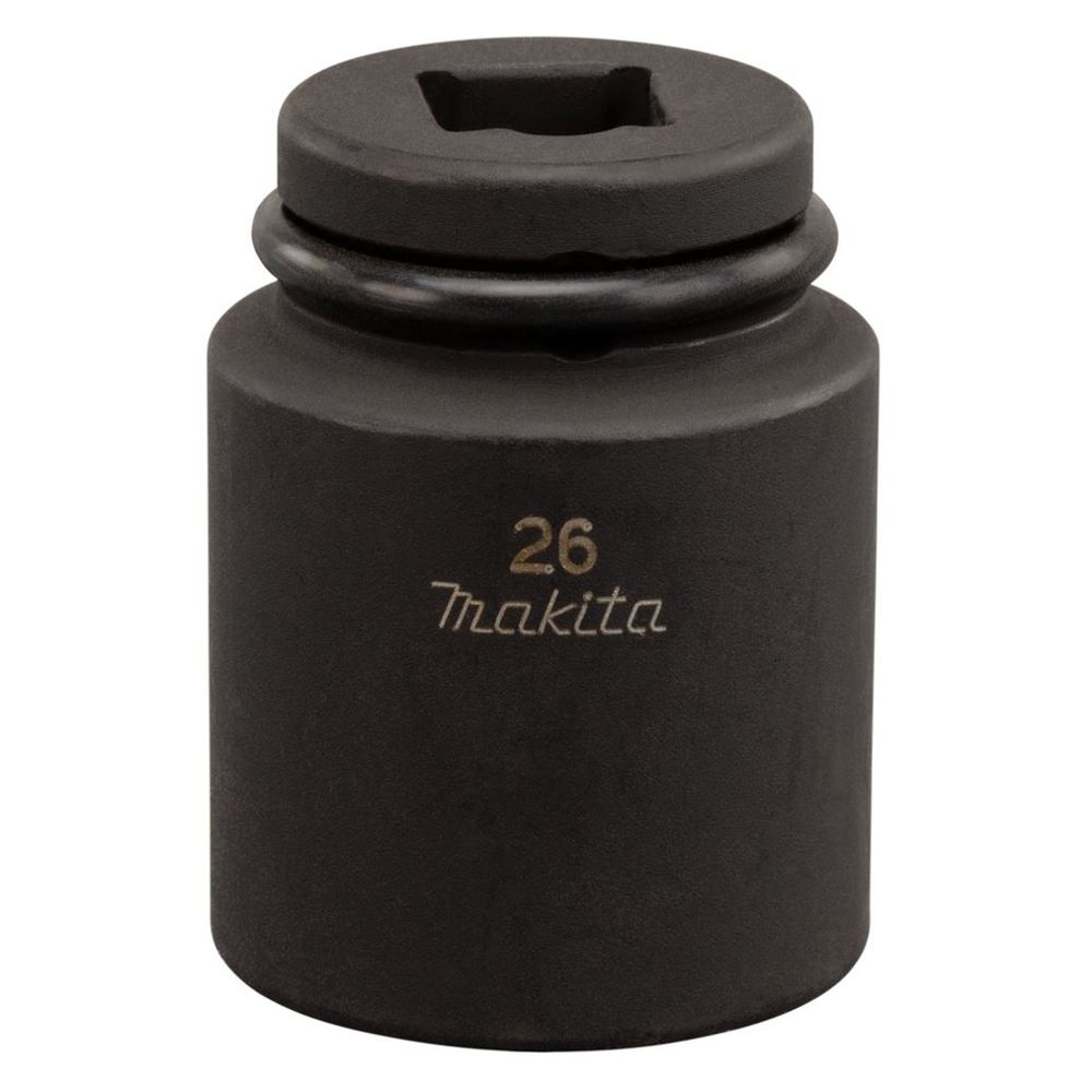 Makita 1/2" Impact Sockets are designed for use with Makita impact wrenches, offering a range of sizes from 8mm to 32mm. Made from durable CR-MO steel, these sockets ensure strength and longevity. The pin ring design provides secure attachment, making them ideal for heavy-duty applications in automotive and construction settings.