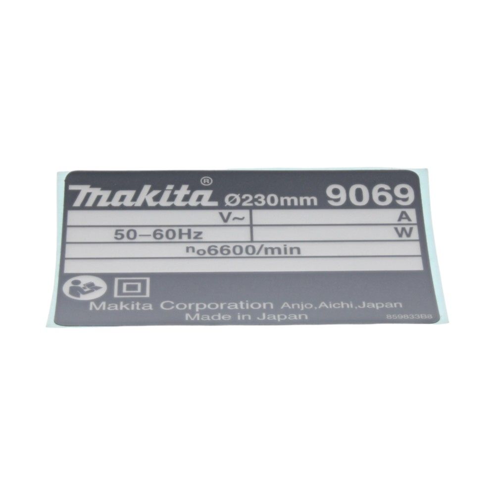 This name plate is specifically used on the Makita 9069 angle grinder, providing essential identification and branding. It is ideal for tradespeople and DIY enthusiasts who need to maintain their equipment's authenticity and ensure easy identification during maintenance or resale.