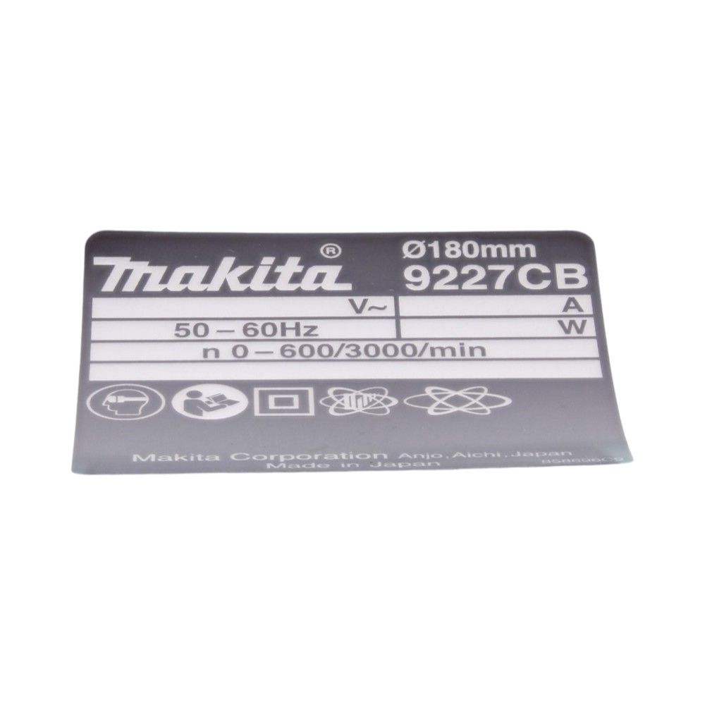 This name plate is specifically used with Makita 9227CB polishers, providing essential identification and maintaining the equipment's professional appearance. It is ideal for regular maintenance and replacement to ensure the polisher remains in optimal condition.