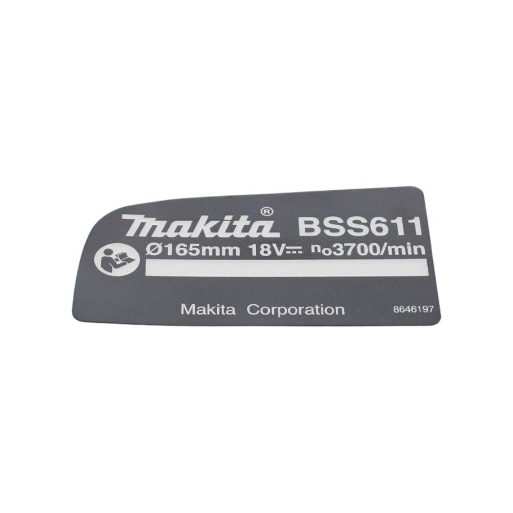 This component is also referred to as a circular saw name plate, Makita BSS611 name plate, or simply a saw identification plate, making it a crucial part of your tool maintenance kit.