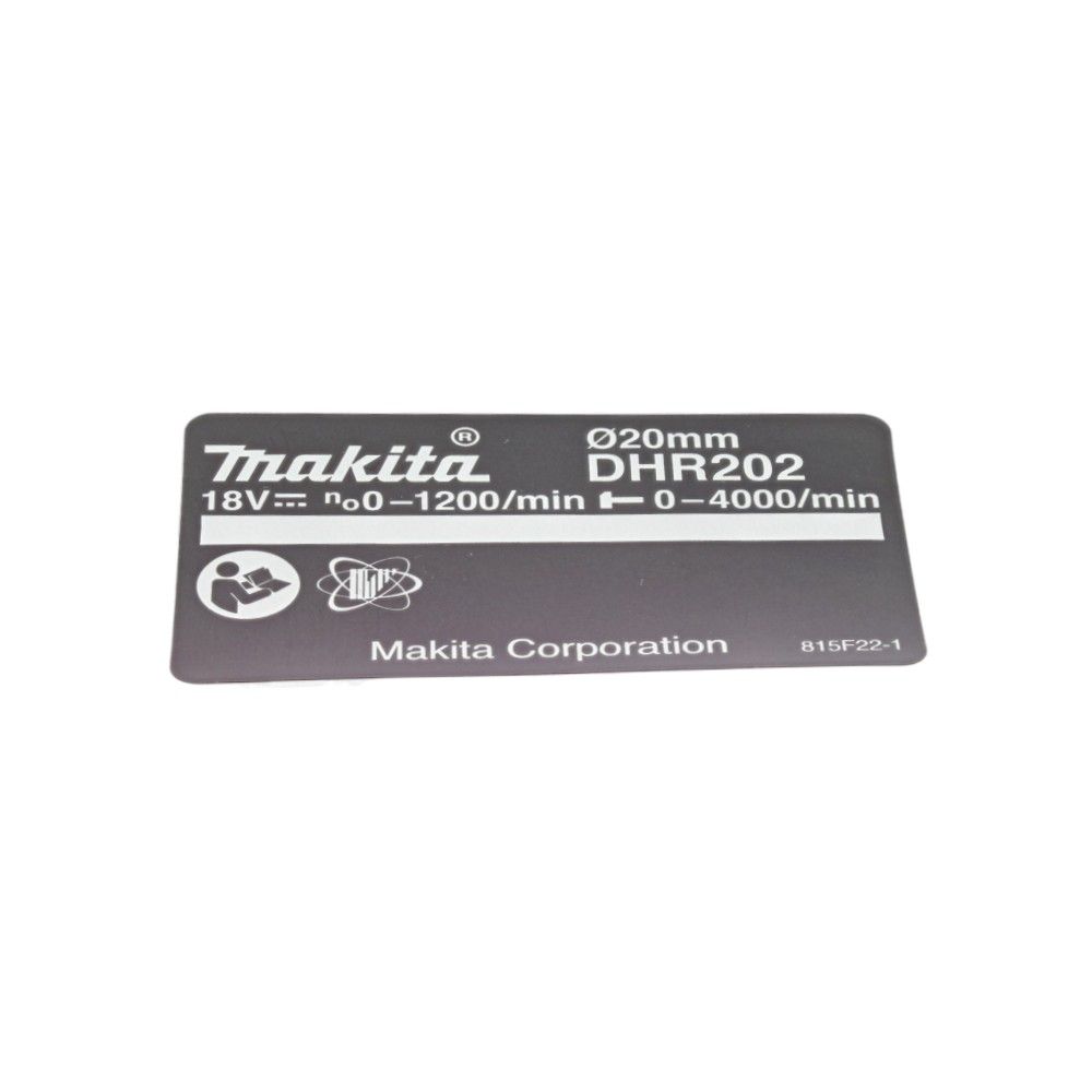 This component is also referred to as a Makita DHR202 nameplate or a tool identification plate, making it a crucial part of your hammer's maintenance and identification system.