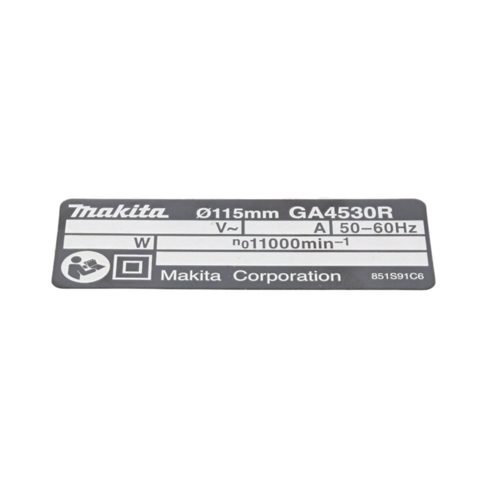 This component is also referred to as a Makita angle grinder name plate or GA4530R name plate, making it a key part of your tool maintenance and identification kit.