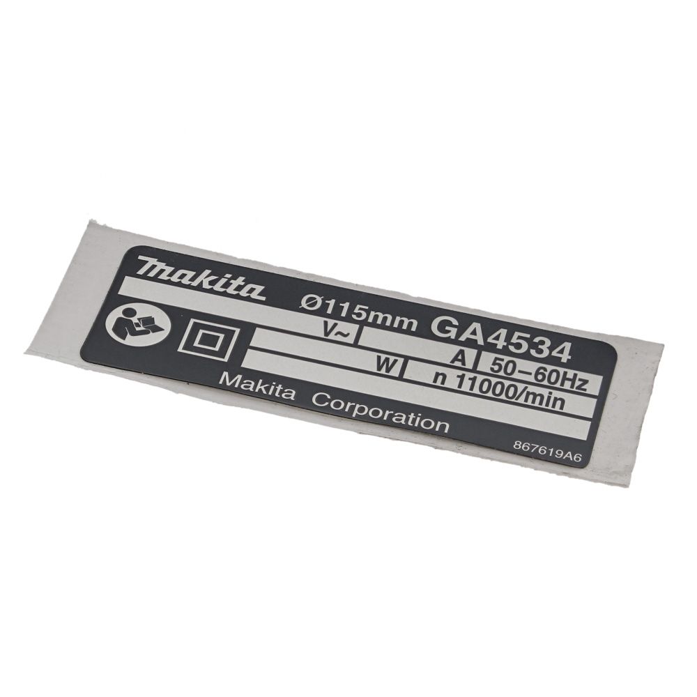 This component is also referred to as a Makita GA4534 identification plate or angle grinder name tag, making it a crucial part of your grinder's maintenance and identification toolkit.