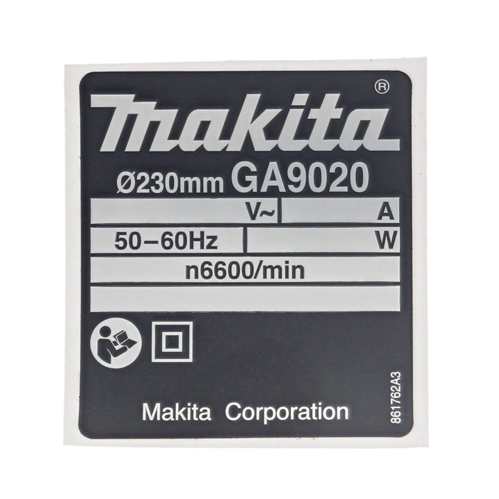 Makita GA9020 name tag, GA9020 identification plate, GA9020 rating label, tool ID label, model label, machine name badge.