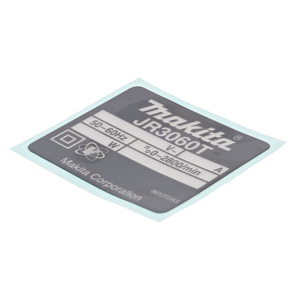 The Name Plate for Makita JR3060T Cordless Circular Saws, with Manufacturer Part Number (MPN) 861223-3, is a genuine Makita replacement part designed to fit seamlessly onto your JR3060T model. This name plate is crafted from durable materials to withstand the rigours of regular use in construction and garden machinery. It serves as an essential component for maintaining the identification and aesthetic of your tool, ensuring that your equipment remains easily recognisable and in compliance with branding requirements.