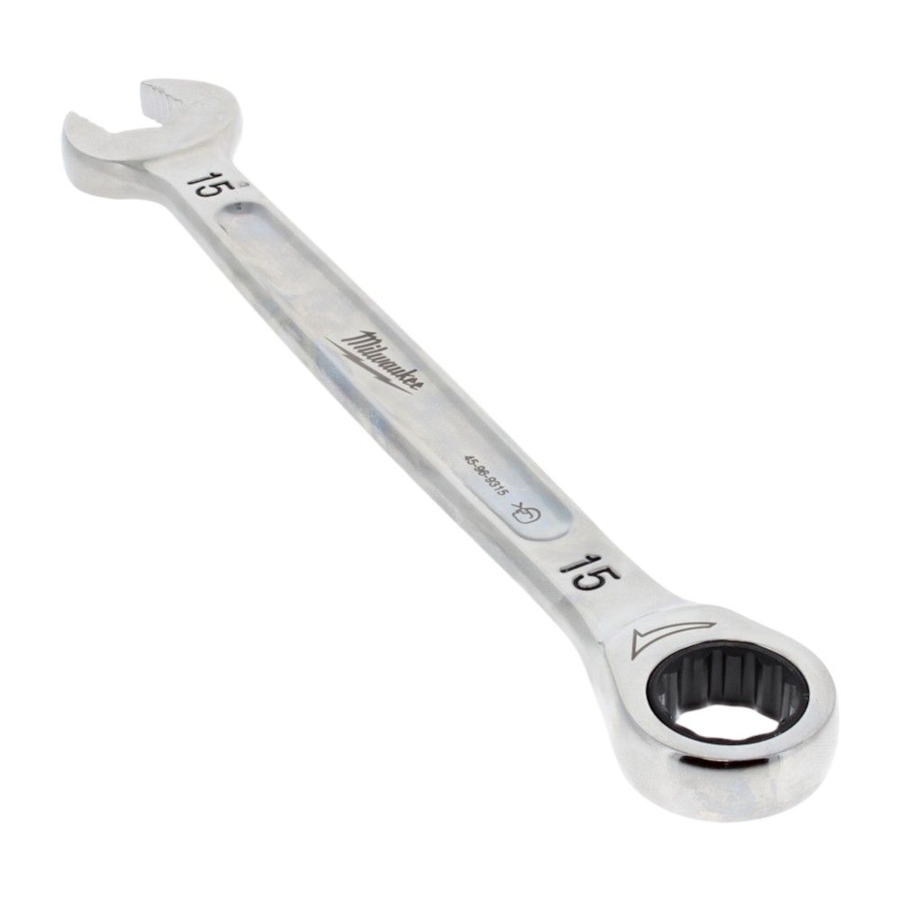 The 15mm Maxbite Ratcheting Milwaukee Metric Combination Spanner is a high-quality tool designed for precision and efficiency in various construction and garden machinery tasks. Made from durable materials, this genuine Milwaukee part ensures long-lasting performance and reliability. The spanner features a ratcheting mechanism that allows for quick and easy fastening and loosening of nuts and bolts, making it an essential tool for both professional tradespeople and DIY enthusiasts. Its metric sizing is ideal for use with a wide range of equipment, ensuring compatibility and ease of use.