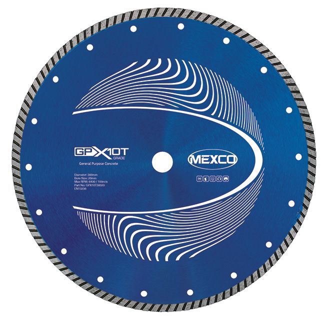 Mexco GPX10T30020, GPX10 X10 Turbo Concrete Blade, 300 mm/12 inch concrete diamond disc, general purpose concrete diamond blade, Mexco turbo rim concrete blade.