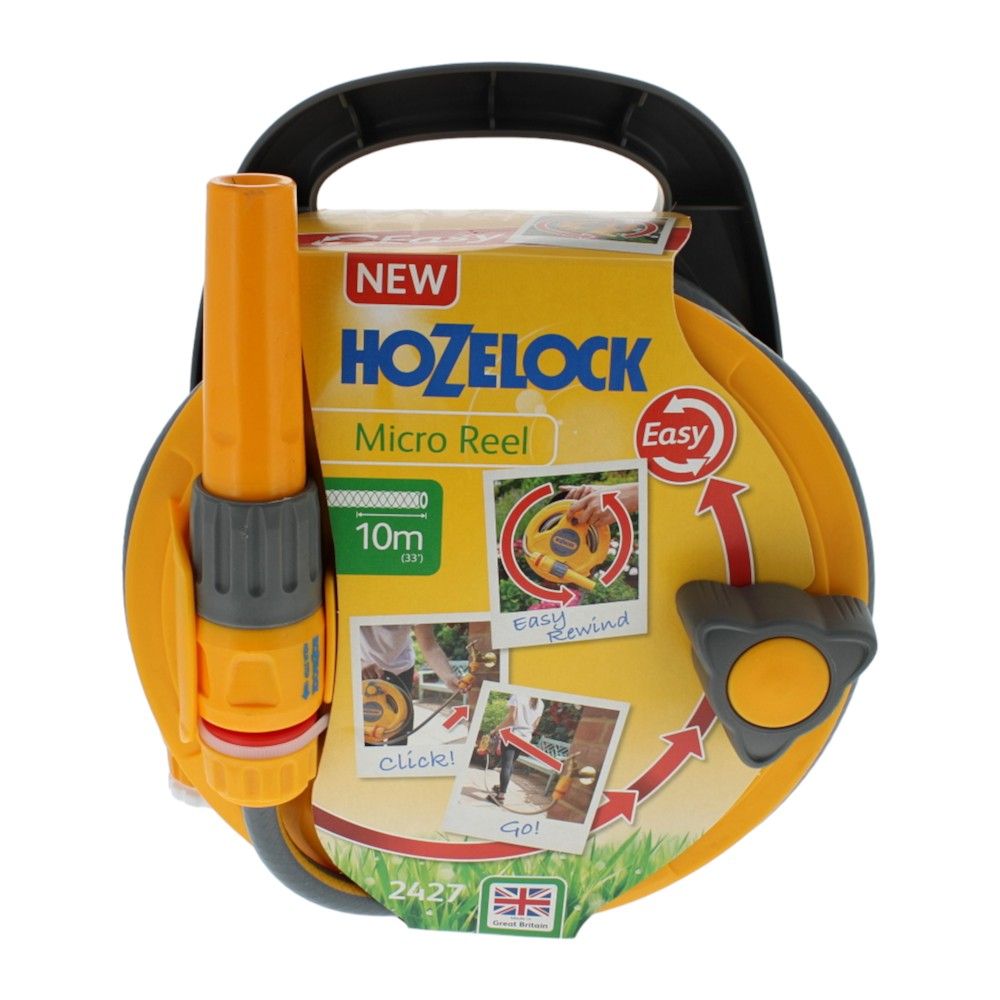 The Hozelock Micro Hose Reel is an efficient and compact solution for managing your garden watering needs. Designed with a rotating drum and a convenient handle, this hose reel ensures quick and tidy storage without the hassle of tangles. Made from durable materials, it features a 'Click & Go' connector that easily attaches to your tap. The included 10m (approximately 32.8 feet) of 7mm hose allows you to water at any length without needing to fully unwind it. This makes it an ideal choice for small gardens, where space and ease of use are paramount.