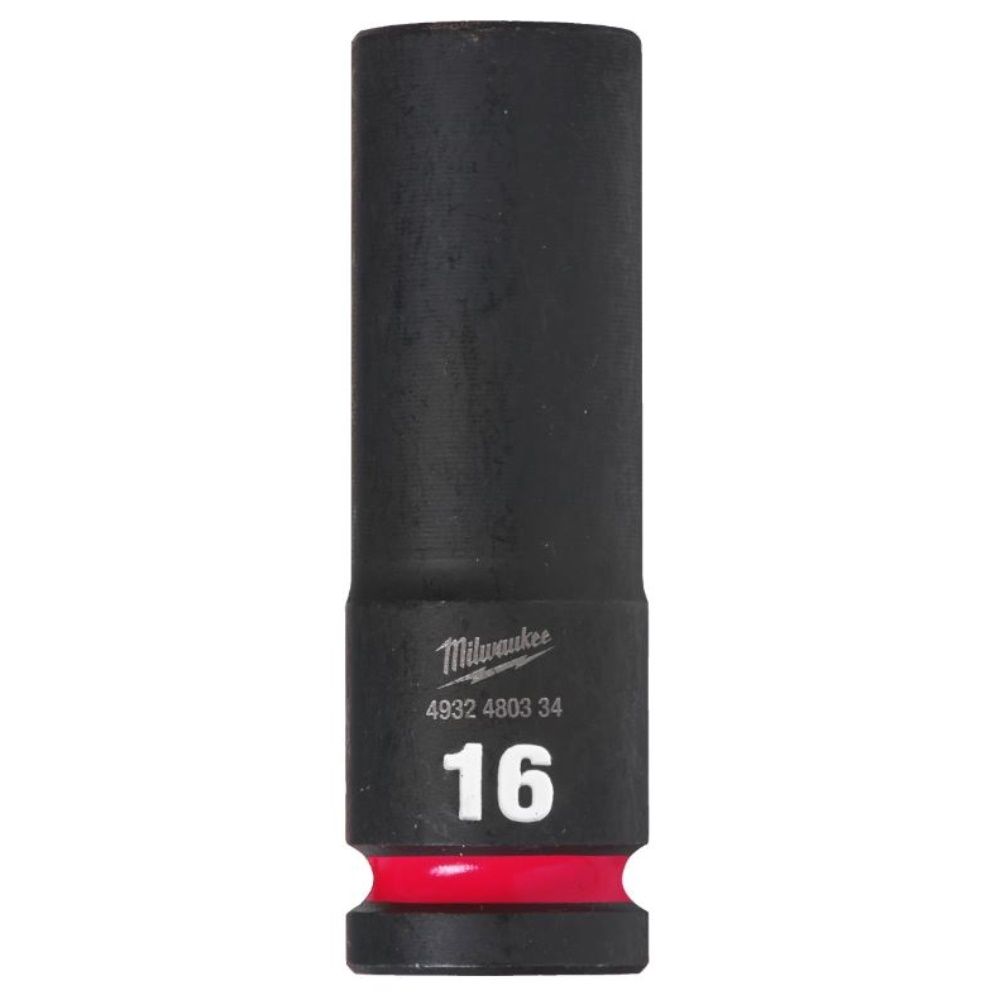 Milwaukee 1/2" Long Impact Sockets are crafted from SHOCKWAVE™ IMPACT DUTY steel, a high-quality alloy providing exceptional strength and durability. Featuring a non-slip hex geometry and six gripping points, these sockets prevent rounding of fasteners. The deep wall construction offers clearance for protruding bolts, while stamped and ink-filled diameter markings ensure wear resistance. Dual hole design and groove accommodate security accessories.