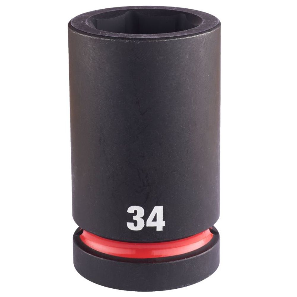 Milwaukee 1" Long Impact Sockets are crafted from SHOCKWAVE™ IMPACT DUTY steel, a high-quality chrome-molybdenum alloy, ensuring exceptional strength and durability. Featuring a deep wall construction, these sockets provide clearance for protruding bolts. The non-slip hex geometry prevents rounding, while the dual hole design and groove accommodate security accessories. Available in various sizes.
