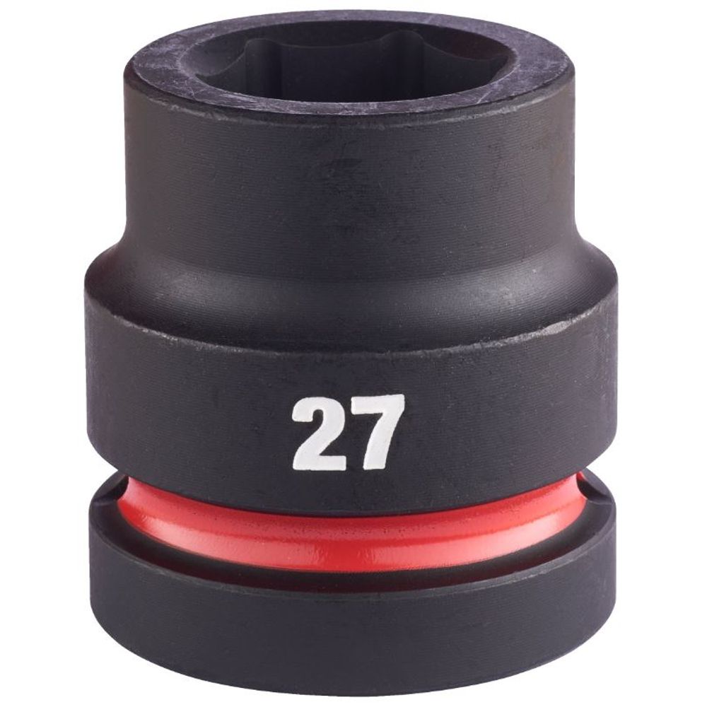 Milwaukee 1" Impact Sockets are crafted from SHOCKWAVE™ IMPACT DUTY steel, a high-quality Chrome-Molybdenum alloy, ensuring exceptional strength and durability. The sockets feature a non-slip hex geometry to prevent rounding and a deep wall construction for bolt clearance. Stamped and ink-filled diameter markings, along with laser-etched part numbers, offer wear resistance. Dual hole design and groove accommodate security accessories.