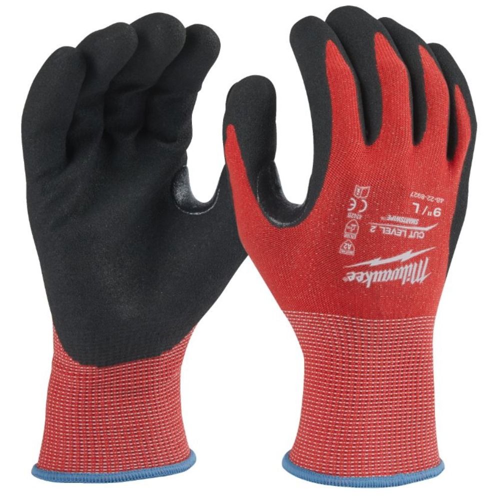 Milwaukee Cut B Gloves offer excellent grip performance with nitrile material, outperforming others in various temperatures and oily conditions. Designed for comfort and dexterity, they provide superior puncture resistance against sharp materials. Featuring SMARTSWIPE™ technology, the gloves allow touchscreen use without removal. Certified for cut resistance: EN ISO 21420, EN388:2016 (4242B), UKCA.