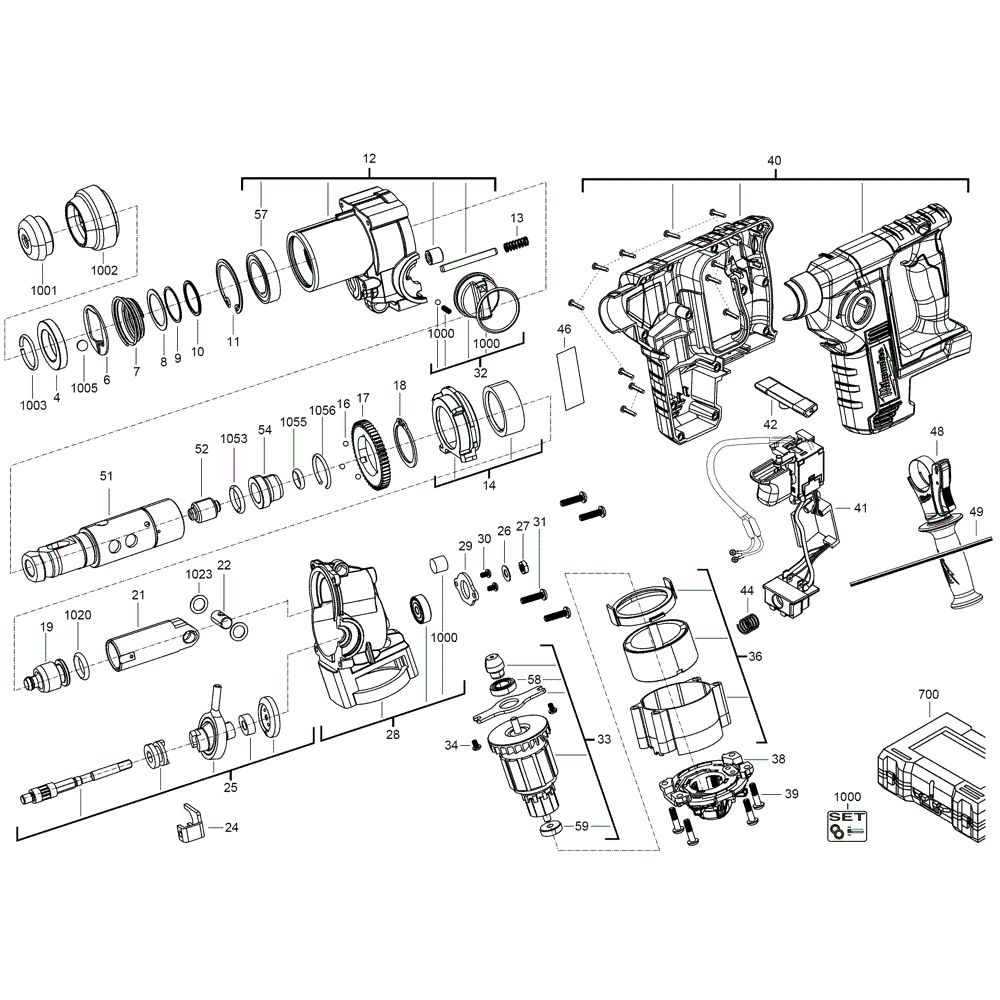 The Milwaukee M18BH Hammer Assembly includes genuine spare parts essential for maintaining the performance and longevity of your M18BH tool. This assembly ensures efficient operation by providing components that are crucial for the hammer's function. Available parts may include pistons, seals, springs, and other necessary elements for optimal tool maintenance.