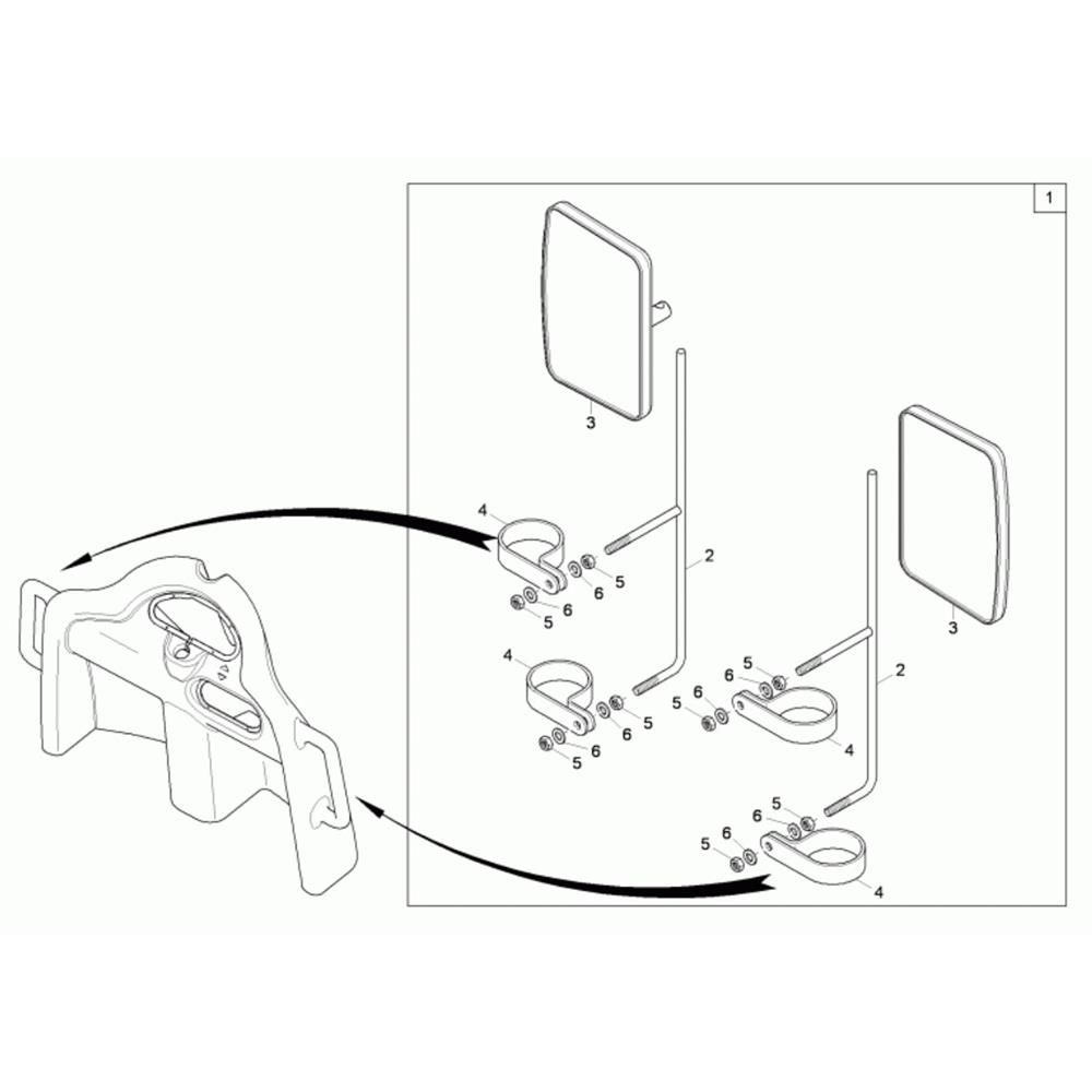 The Mirror Assembly for the Neuson 1001 Dumper is designed to enhance visibility and safety during operation. This assembly includes components such as brackets, mirrors, and mounting hardware, ensuring a secure fit and optimal performance. Genuine Wacker Neuson parts guarantee compatibility and durability, making it an essential component for maintaining the dumper's operational efficiency.