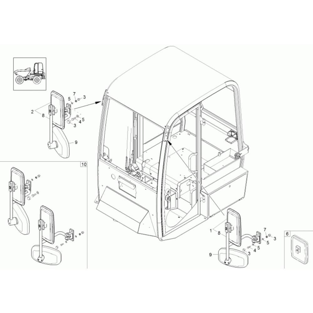 The Mirror Assembly for the Wacker 10001 Dumper is designed to ensure optimal visibility and safety during operation. This assembly includes essential components such as the mirror glass, mounting brackets, and adjustment mechanisms. Genuine Wacker Neuson parts guarantee compatibility and reliability, helping to maintain the dumper's performance and safety standards.