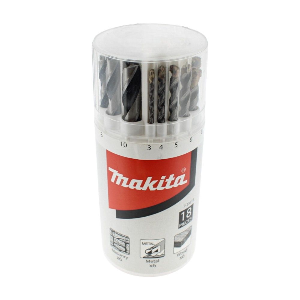 The Mixed Drill Bit Set Drum 18 Piece is a versatile and essential accessory for both professional tradespeople and DIY enthusiasts. This genuine Makita part, identified by OEM No. P-23818, includes 18 high-quality drill bits designed for precision and durability. Made from robust materials, these bits are suitable for drilling into various surfaces, including metal, wood, and masonry. The set is ideal for use with a wide range of power drills, offering flexibility and efficiency for different tasks and projects.