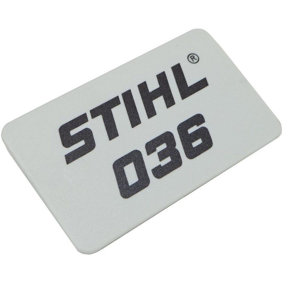 This Model Plate is a genuine Stihl identification plate for the 036 series, supplied under OEM Part No. 1125 967 1508. It is designed to clearly display the model designation on your chainsaw, helping with service records, parts selection, and compliance during inspections. Made from a hard‐wearing, corrosion‐resistant material with durable print, it stands up to everyday use around fuel, oil, and debris. The plate is a direct replacement for worn, damaged, or missing plates and restores the original identification on your machine. It is purpose‐made for Stihl 036 and MS 360 machines, ensuring the correct layout and a tidy, factory‐style finish. Straightforward to fit in the original location, it provides a reliable, long‐term solution for accurate tool identification on site or in the workshop.
