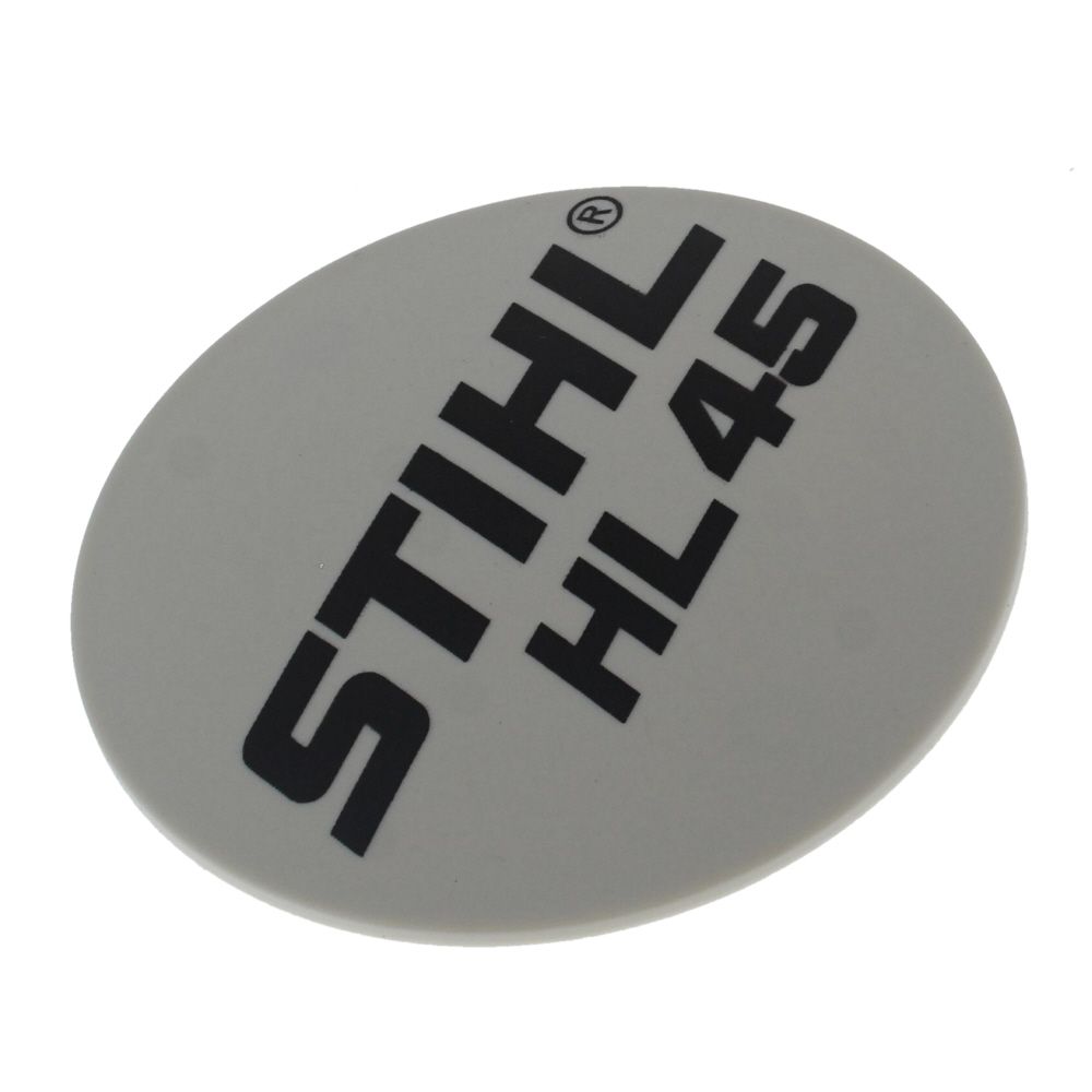 This component is also referred to as a hedgetrimmer model identification plate, Stihl HL 45 model tag, or simply a hedgetrimmer plate, making it a versatile and essential part of your equipment maintenance toolkit.
