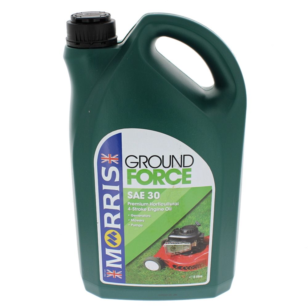 Morris Ground Force SAE 30 Engine Oil (5 Litre) is a genuine small‐engine lubricant from Morris Lubricants, designed for 4‐stroke horticultural and light construction machinery. This single‐grade SAE 30 oil forms a stable protective film in air‐cooled petrol engines typically found in lawn mowers, generators, rotavators, plate compactors and water pumps. It helps control wear, reduces friction, and keeps critical parts such as pistons, rings and valve trains clean under continuous load. The 5 L pack is practical for workshops and regular users, and the robust plastic container includes a carry handle and screw cap for controlled pouring. Genuine Part with Manufacturer Part Number AE005. Use where SAE 30 is specified by the equipment manufacturer.