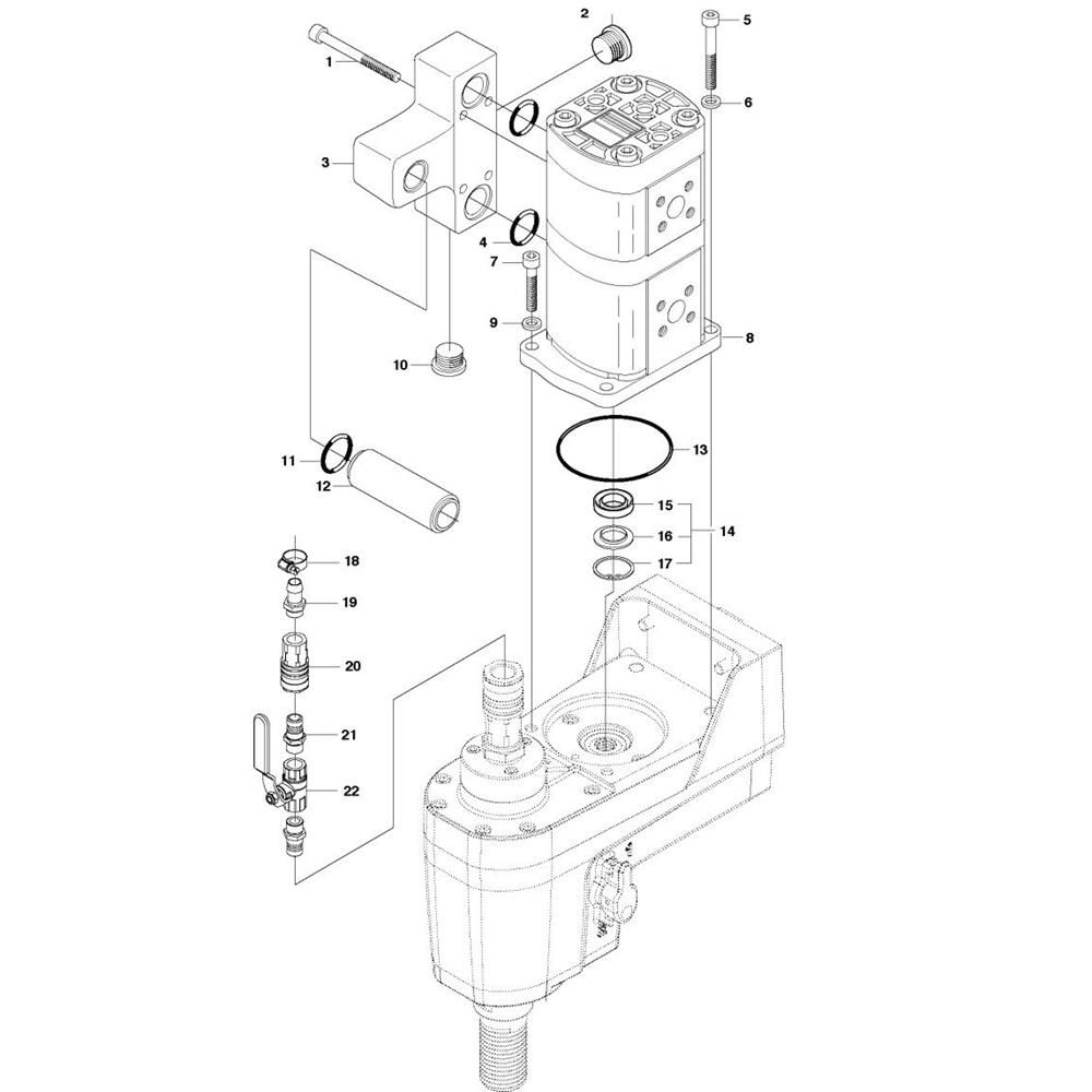 The Motor Assembly for the Husqvarna DM 406 H Core Drill is designed to ensure optimal performance and longevity. This assembly includes key components that facilitate efficient drilling operations. Genuine Husqvarna parts help maintain the drill's power and reliability, making it suitable for demanding tasks. Available components may include motors, gears, and housings.