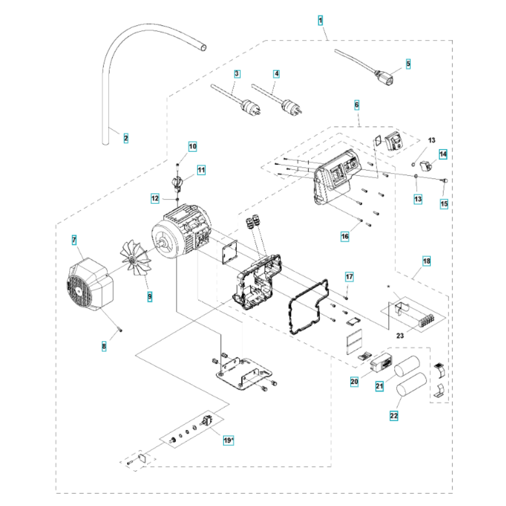 The Motor Assembly for the Husqvarna TS 90 Masonry Saw is designed to ensure optimal performance and longevity of the saw. This assembly includes key components such as the motor housing, rotor, and stator, which work together to deliver reliable power and efficiency. Essential for routine maintenance and repairs, it helps maintain cutting precision and operational safety.